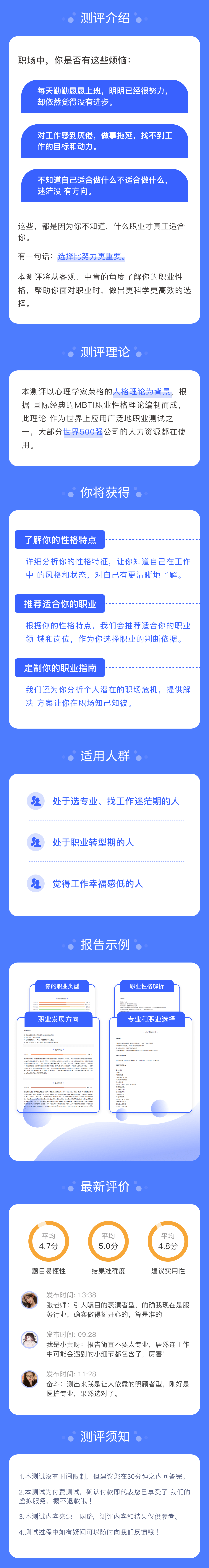 MBTI职业性格测试,清楚地了解自己的性格优劣势,有利于更好地发挥自己的特长,而尽可能的在为人处事中避免自己性格中的劣势,更好地和他人相处,更好地作重要的决策。